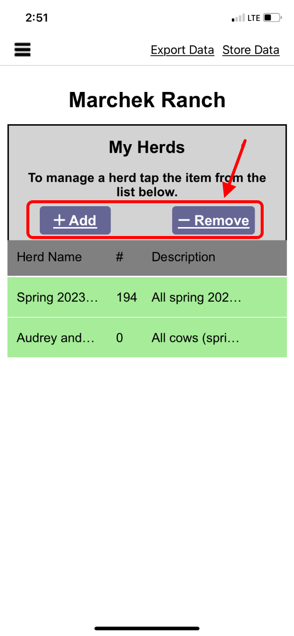 Login to your account and select a herd from the home page to add/remove animals